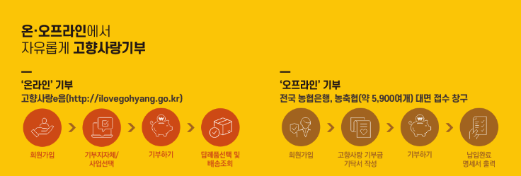 지금 바로 고향사랑e음에 접속하여 기부를 시작하고, 연말정산 혜택을 최대한 누려보세요! 세금도 돌려받고 지역 특산품으로 연말을 더 풍요롭게 마무리해 보세요.