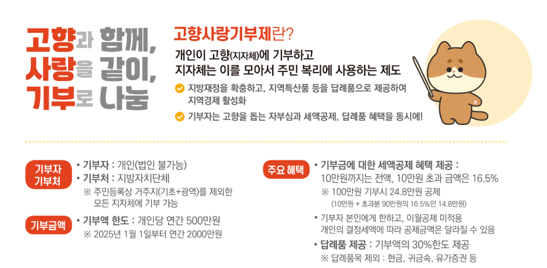 - 지역 제한: 본인의 거주지 지방자치단체에는 기부가 불가능합니다.