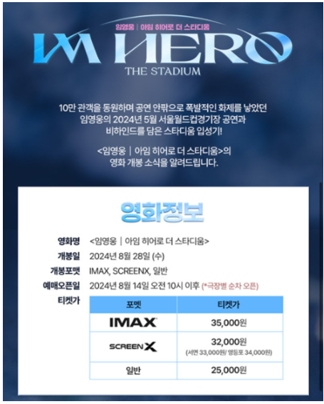 임영웅의 콘서트 영화 '아이엠 히어로'가 곧 개봉하였습니다. 지난 5월에 열린 임영웅 콘서트를 놓치신 분들께는 이번 영화를 통해 다시 한번 그 감동적인 무대를 즐길 수 있는 기회가 주어집니다. 이 글에서는 영화 예매 가격, 상영 일정, 그리고 예매 방법에 대해 안내해 드리겠습니다. 또한, 이 글에서만 제공되는 특별 할인 정보를 확인하시고, 매진되기 전에 서둘러 예매하시기 바랍니다.