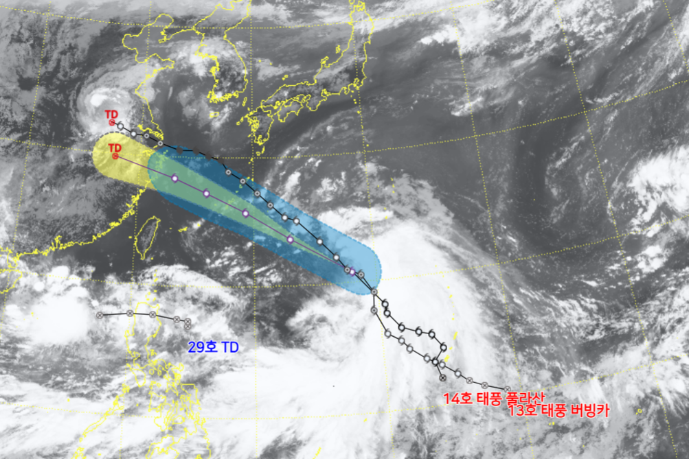 풀라산은 앞으로 서해안을 따라 한반도 남부 지방에 영향을 미칠 가능성이 큽니다. 일본 오키나와 지역을 거쳐 서해 상공으로 진입한 후, 중국 상하이 지역으로 이동할것으로 보입니다. 다만, 이동 속도와 방향은 기상 상황에 따라 변동될 수 있습니다.