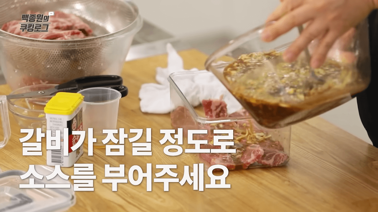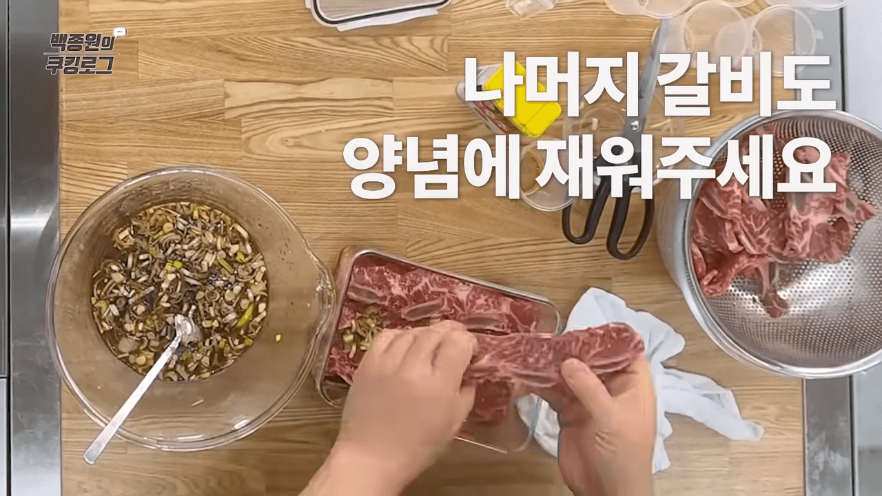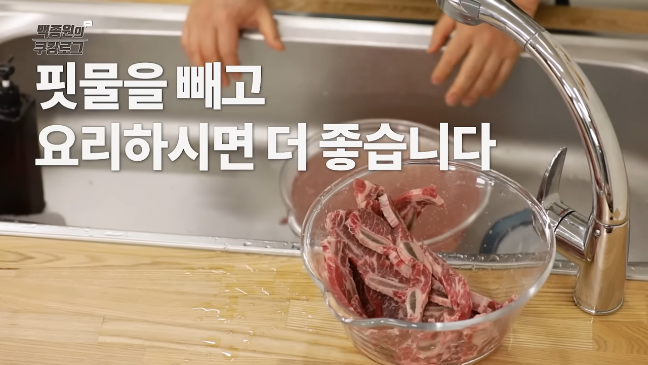 갈비의 핏물을 제거하는 과정은 중요합니다. 핏물이 남아 있으면 양념 맛을 방해하기 때문에 꼭 제거해 주셔야 합니다.