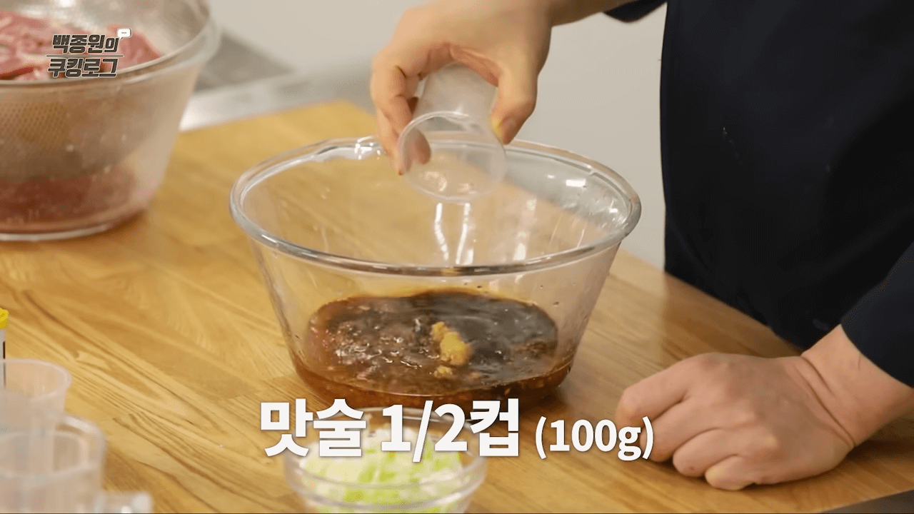 - 맛술과 마늘: 맛술 미림 1/2컵과 다진 마늘 1/4컵을 추가해줍니다. 맛술은 잡내를 없애고 고기의 풍미를 살려줍니다.
